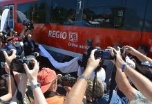 Tak jsem tedy zase jednou dělal užitečnou zátěž, když -miw- vyrazil, aby byl včas na slavnostní stříhání pásky v 11:00. No, nebylo to zrovna jednoduché, v Sebnitz probíhají nějaké práce na silnici, sem tam slepá, sem tam jednosměrka, takže jsme potkávali bloudící auta s logem různých médií a hledali tu správnou objížďku, abychom se dostali k vlakovému nádraží. Naštěstí jsme jeli dostatečně včas. Lidí plno, krojované družiny, dechovka, milion kravaťáků… Nejprve přijel vlak, ze kterého se vyhrnuly delegace, chvíli se pobíhalo po perónu kolem info stánků sem tam, až jsme zakotvili před pódiem, odkud se mluvilo a mluvilo a chválilo a gratulovalo… Ministři, zástupci ministrů, starostové, hejtmani, generální ředitelé, poslanci, senátoři, europoslanci. Všichni plni dobré vůle, až se člověk musí ptát, proč to teda vlastně do háje trvalo tak dlouho? Nějaké ty oficiální kecy, statistiky a podobně ke studiu v médiích – iDNES (fakt vtipné fotky, nemám tuchy, kde se jim mezi Sebnitz a Poustevnou povedlo vyfotit ten tunel) nebo Deník.