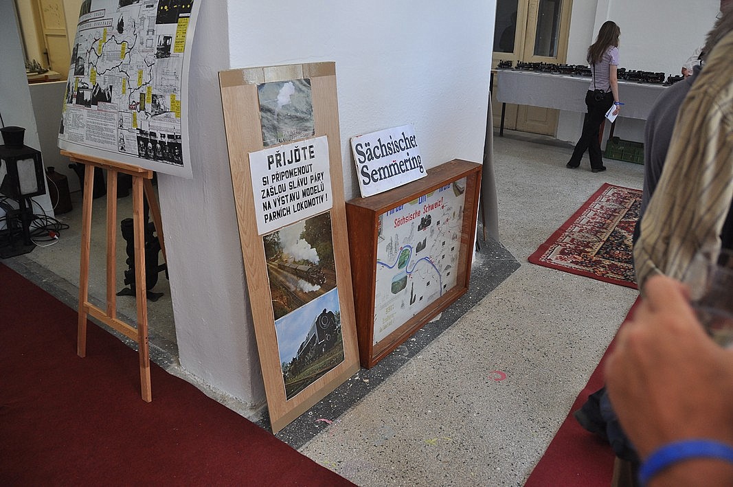 Krátký rozchod využiji k tomu, abych prozkoumal v nádražní budově inzerovanou výstavku. Zdaleka tu nejsou jen slibované vláčky Tillig, od fochu je tady toho k vidění daleko víc, od známek po původní kolejnici. No, a pak už jen závěrečná cesta zpět na německou stranu, kde parkujeme, a rozhodnutí, že na odpolední kulturní program peču. Třeba se tam někdo jiný vypravil udělat taky nějakou další fotku…