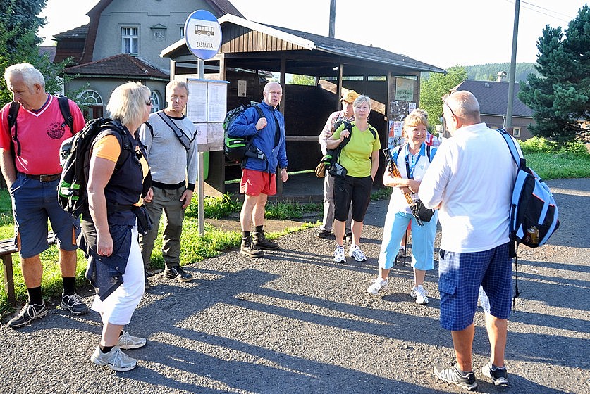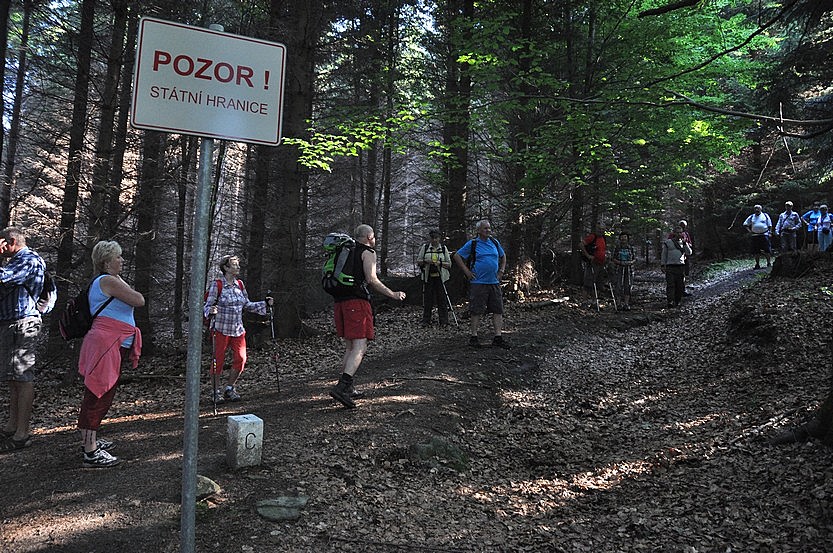 První den začínal v Rumburku, odkud jsme autobusy dorazili plynule do Severního u Lobendavy. Pěšky pohodlně k nejsevernějšímu bodu naší republiky. Kolem blyštivého potoka, který ve slunečních paprscích vskutku vzbuzuje dojem, že mohl být zlatonosný (prý je to ale pyrit), po žluté značce přímo po hranici k silnici do Severního. Nevracíme se do republiky, nýbrž dále sledujeme hranici. Dá se jít po značené trase, nazývané Mravenčí cesta. My volíme volnější pochůzku, která tuto cestu několikrát překříží a několikrát s ní splyne. Všude infotabule, lavičky, odpočívadla (ve výborném stavu) a taky připomínka „neprostupnosti“ hranice v podobě kamenných valů mezi patníčky. V popisu cesty je tato část pojmenována hřebenovkou Grenzweg, ale cesta vede vesměs po rovině. Dorazíme k Třípanskému kameni (Dreiherrenstein). Tímto označením se honosí mnoho míst, tento konkrétní pochází z roku 1750 a podle tabulky se nachází na pomezí dřívějších panství Sahla-Sohladn / Hainspach (früher Böhmen) / Bautzen-Wehrsdorf. Další zastávkou je horská restaurace s vyhlídkou prince Friedricha Augusta. Bohužel, z občerstvení nic nebylo, v ruce psaná tabule informovala o skutečnosti, že je tu otevřeno jen od čtvrtka do neděle… Tak se snad rozhlédneme jindy. Přes Neudorf se Solanskou (Sohlandskou) cestou dostáváme do Lipové, kde na nás v infocentru v podstávkovém domě čeká místní starosta s výkladem o obci, investicích, historii a plánech. Také tu ale jsou piva Falkenštejn i Kocour, a samozřejmě prohlídka celého domu s výkladem. Protože časový plán klape na 100%, máme čas před odjezdem (po čtvrté hodině odpolední) posedět v klidu U pytláka. Výletům zdar a za týden zas!