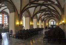 Když je čas srazu, hromadně zamíříme k dalšímu z kostelů – Katedra św. Marii Magdaleny umožňuje také výstup na věž, ozvláštněný tím, že hlavní vyhlídka je z mostku mezi jeho dvěma věžemi. Mě ovšem Vašek Hieke poradí, abych se vrátil na radnici, že výstavní síň má dveře otevřené a stojí to za to. Měl pravdu, snad je to vidět i na fotkách, druhou vyhlídku shora jsem s radostí oželel.