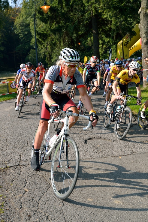 V 9:50 vyrážejí z Dymníku historická kola, v 9:55 stará garda a v deset hodin pak startuje hlavní závod. Ten je veden pomalým tempem přes celé město k restauraci Zelený strom, kde je ostré zahájení závodu a cyklisté vyrážejí v tempu, které jim vyhovuje. Exhibiční průjezd městem si užívají diváci i závodníci, mají čas rozhlížet se a mávat.