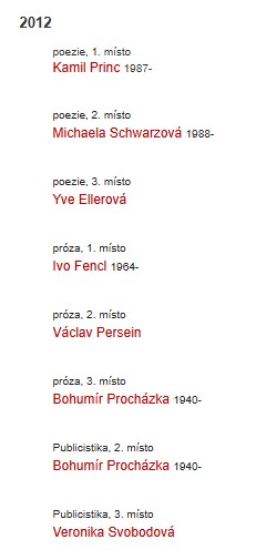 Musím se totiž kvůli tomu vrátit do pátku 15. června 2012, kdy v městské knihovně probíhalo vyhodnocení soutěže Literární Varnsdorf 2012. Ta se ob rok střídá s dětskou soutěží Drápanda a odlišuje se od ní tím, že věk soutěžících není limitován. Soutěžní kategorie jsou : PRÓZA / PUBLICISTIKA (reportáž, črta, rozhovor, fejeton, literatura faktu) / POEZIE. Podle slov porotců i pořadatelů byl letos počet soutěžících nezvykle nízký (pro pořadatele trochu zklamání, pro porotu naopak potěcha, že toho nebylo třeba číst tolik). Že by se „krize“ projevovala i v této oblasti? Nicméně podle poroty se to neprojevilo na kvalitě vrcholku ledovce, protože zmizel především odpad, který se v minulých ročnících zahazoval jako nepotřebný balast.