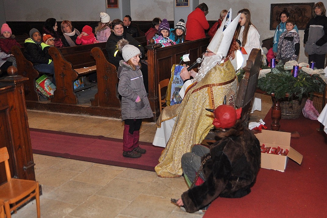 I ve Varnsdorfu se rozdávali sladkosti z rukou svatého Mikuláše, v pátek 5. prosince 2014 třeba ve starokatolickém kostele.