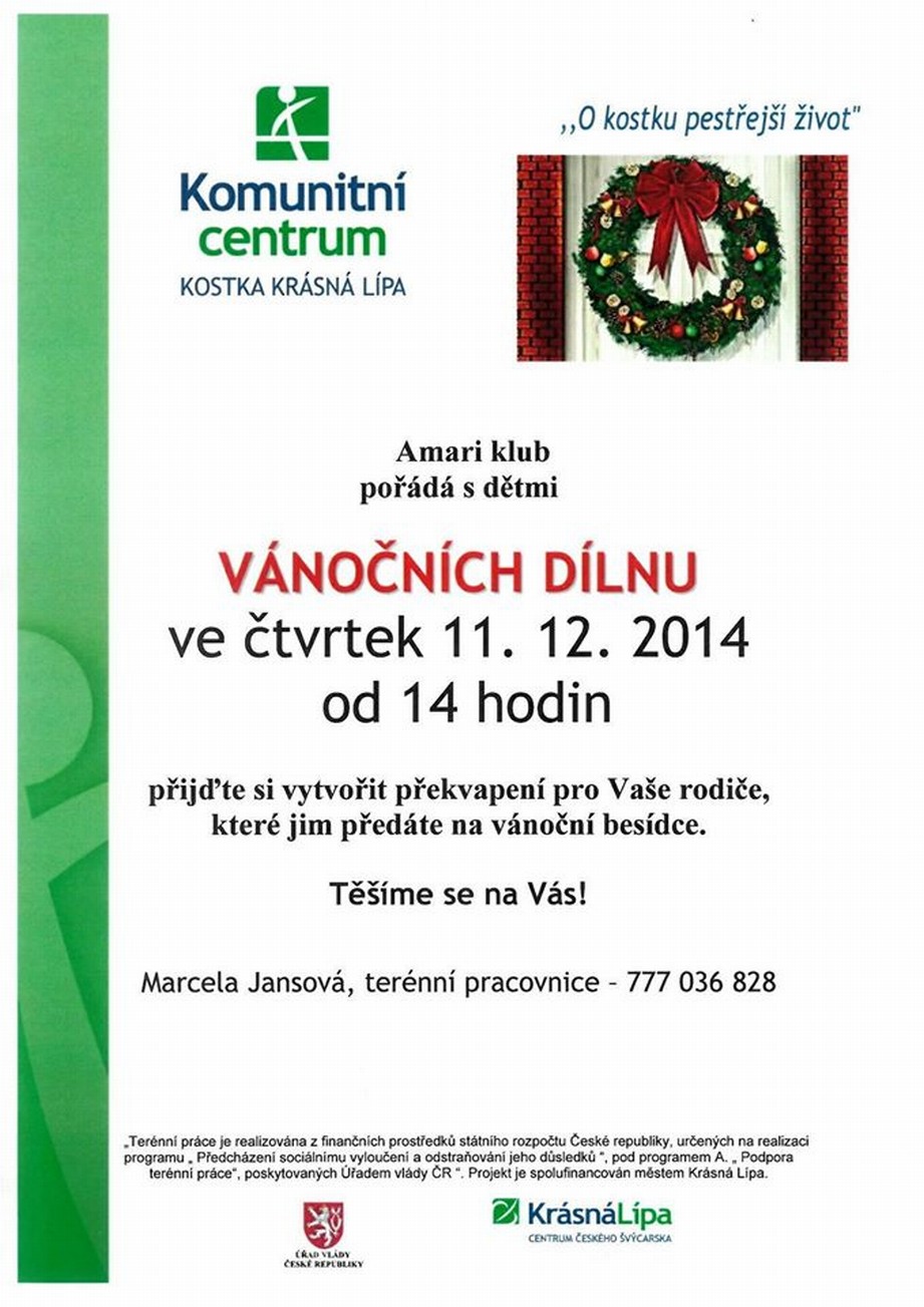 V sobotu 13. prosince 2014 zase trochu přetlak. Po ránu začíná turistický advent v Krásné Lípě, odpoledne pak na faře v Jiřetíně a také v RBK Na Kopečku. Nebo můžete zajít tvořit do mikulášovického Skloluxu, podívat se v Jiříkově na hafany na Trojj-Bojj, nebo třeba utéct až do Kravař na Víseckou rychtu.