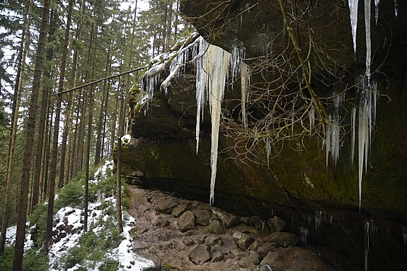 I když je to vskutku nedávno, kdy jsem se byl na letos takřka neexistujících ledopádech procházet, neodolal jsem nabídce Klubu českých turistů na další výšlap a přes ranní komplikace se nakonec s poměrně početnou skupinou sešel ve středu 11. února 2015 v Brtníkách u Ametystu. Organizátoři napočítali 24 příznivců turistiky, a to nejen z našeho okolí – početná skupina dorazila z Děčína a byli tu výletníci z Mostu nebo Litoměřic… A určitě nelitovali, stejně jako já. I když ledopády aktuálně nejsou nic moc a jejich vzhled a mocnost se mění nejen denně, ale takřka po hodinách, stačí sebou mít jako průvodce člověka, který zná a ví. Takže vás protáhne místy, o nichž jste neměli nejmenší tušení (Křtící kámen, Křtitelnice), povypráví o historii dávné i nedávné (zmizelý zámeček Šternberk), a vypočítá celkově 13 ledopádů, které stojí za to vidět, když je vhodné počasí. Mikšo, tisíceré díky.