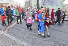 Jak v pozvánkách zmíněno, letos mnoho masopustních průvodů a veselic připadlo na Valentýna a nejinak tomu bylo 14. února 2015 i ve Varnsdorfu. Něco tradičně stejného, něco obměněného. Sraz na nádvoří místní ZUŠ, horký čaj (pro dospělé s), něco sladkostí, první tóny a první taneček. Některé tváře chybí, samozřejmě nechybí Dykyta a celá řada nápaditých masek a kostýmů. Průvod vyráží za Rubikovou Kostkou(lánem), aby se na silnici zařadil za pivovarského oslíka. Následuje tradiční zastávková trasa – cukrárna, vinotéka, Sloupák, pekařství. Ti, kdo čtou, vědí, že jedna zastávka chybí a také vědí proč (ostatně omluva občanům visí ve výloze). Balonky, tekutiny, pochutiny, laskominy a nějak mnoho rukou zůstalo napřaženo prázdných. Podle časového harmonogramu se narážení starostenského sudu na náměstí mělo konat v 10:30, jenže to nějak nevyšlo a průvod byl na konci své cesty o hodně dřív. Ještě rozdávání masopustních perníčků z popelnicového vozidla a zdrhám do tepla, protože na následný bod programu (11:30 odjezd ze Starého nádraží ke Kocourovi) se mi na promrzlém náměstí čekat nechce.