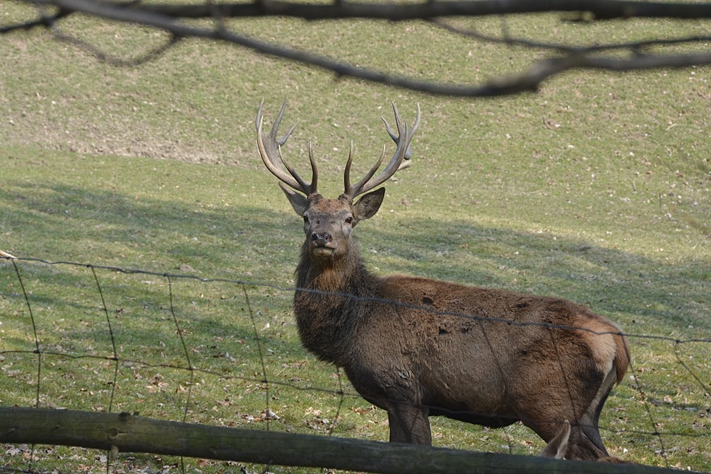 Když jsme se dostatečně vykochali a nafotografovali spousty obrázků, pokračovali jsme dál směrem na Slunečnou. Zemědělská idyla – krávy, prasata, slepice. Jen obora po levé straně prázdná. Když jsme stanuli na silnici, byl jsem naším dnešním průvodcem Mikulášem Peterkou vybídnout, že rychle doběhneme vpravo k další, menší oboře, zatímco zbytek skupiny bude pokračovat ke kostelu, kde se nachází loučka s krokusy. A musím uznat, že odbočka se vyplatila, s radostí jsem se nechal od nebojácných laní poslintat.