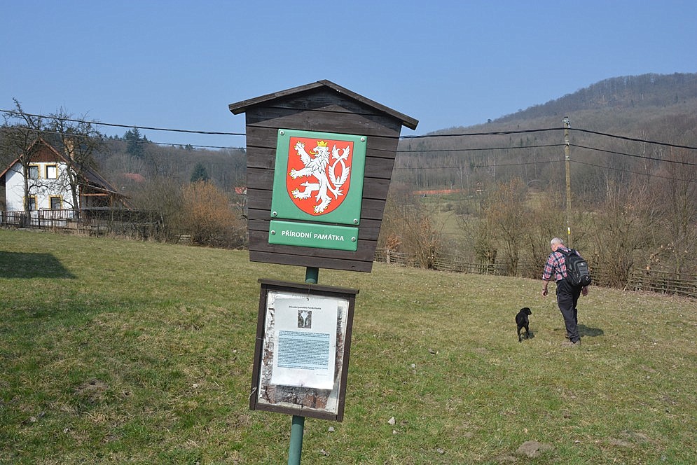 Rychlý přesun za zbytkem výpravy ke kostelu Nanebevzetí Panny Marie, kde na tzv. Farské louce je od roku 1949 vyhlášena přírodní památka kvůli výskytu šafránu bělokvětého, který tu podle místní infotabule v 19. století vysázel místní farář. Bohužel na krásně osluněné loučce bylo kvítků už jen jako šafránu, ale navíc byla k vidění i prvosenka vyšší a sasanka hajní, za ploty v zahradách pak rozkvétající narcisy.