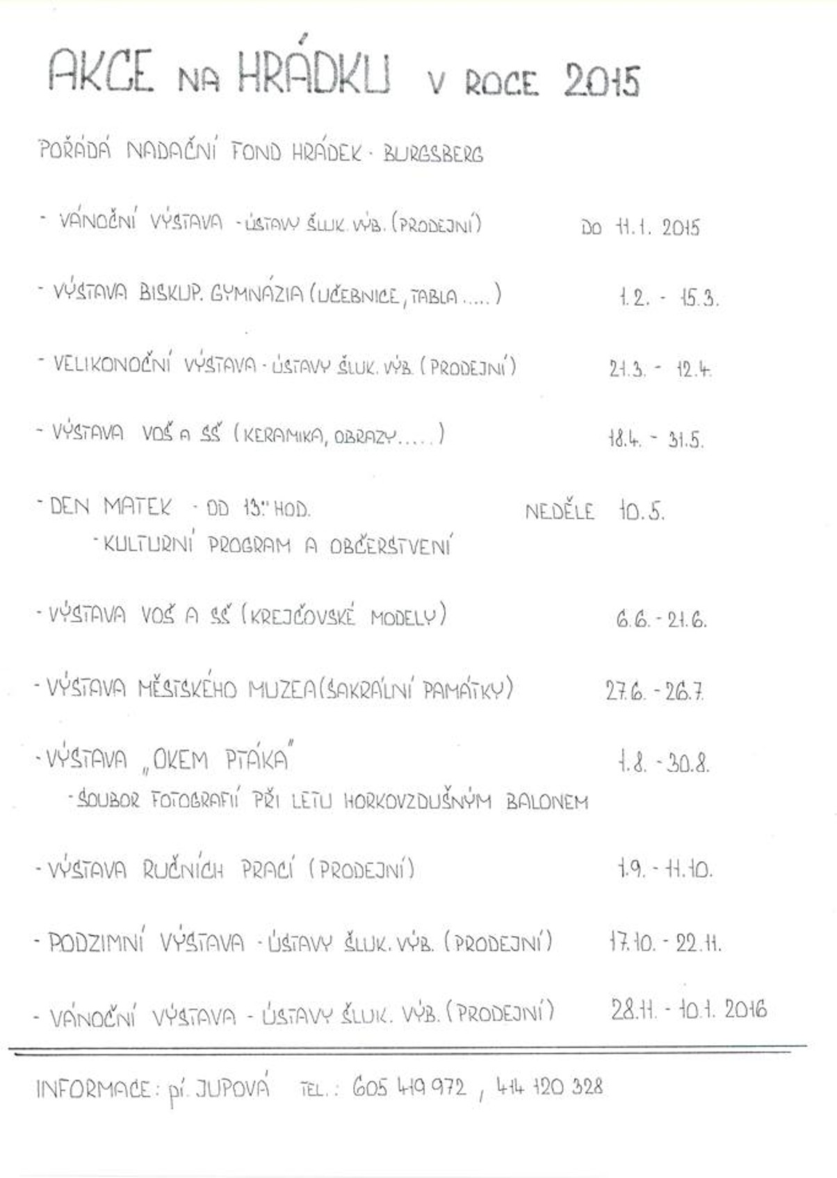 Plakátků máme dost, tak se podívejte. Pokud víte víc než my, neváhejte a dejte nám echo. Přehled mnoha dalších akcí jako vždy najdete také v našem kalendáři.