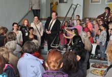 Výstava je sice k vidění na chodbách Městské knihovny už od 1. dubna 2015, slavnostní program se ale konal až nyní. Nejprve tři písničky v podání Bambulí ze ZUŠky, pak představení společného projektu tvorby na africká témata jak zástupci ZUŠ, tak VOŠ a SŠ a na závěr dvě africké scénky (legendy, pohádky?) v podání dramatického oboru ZUŠ. Poté volně na prohlídku a k občerstvení, které zajistila VOŠ a SŠ. V přízemí jsou k vidění díla VO ZUŠ, v patře pak „dospělejší“ tvorba. Velmi zajímavě vypadají podmalby na skle vyřazených oken. Takže až si půjdete něco do knihovny půjčit, nezapomeňte hodit oko na stěny kolem sebe.