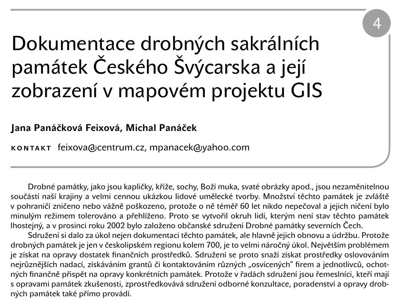 Obecně prospěšná společnost České Švýcarsko dovršila první etapu projetu Listen to the Voice of Villages (Naslouchejte hlasu venkova) a předala představitelům vybraných obcí v regionu pasportizační dokumentaci k plánované obnově drobných sakrálních památek. Zároveň zahájila restaurování prvních objektů v obcích Dolní Poustevna, Hřensko, Chřibská, Janov, Krásná Lípa, Mikulášovice, Růžová a Staré Křečany.