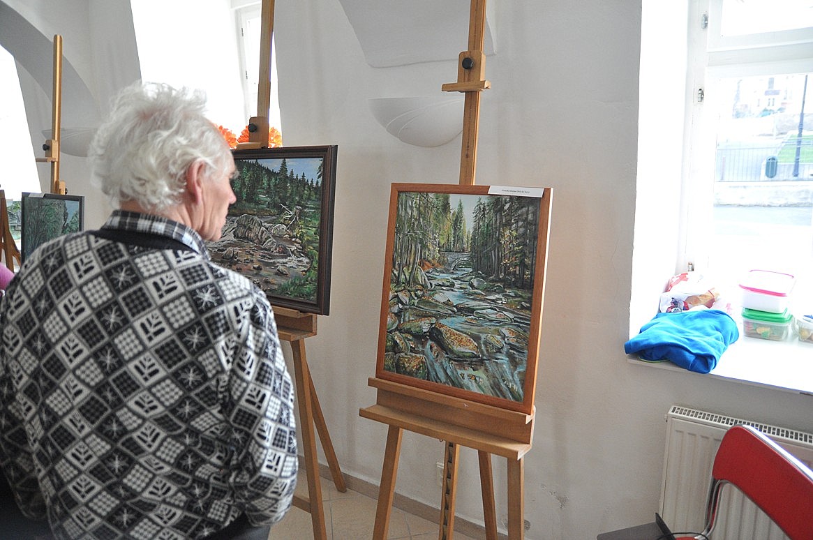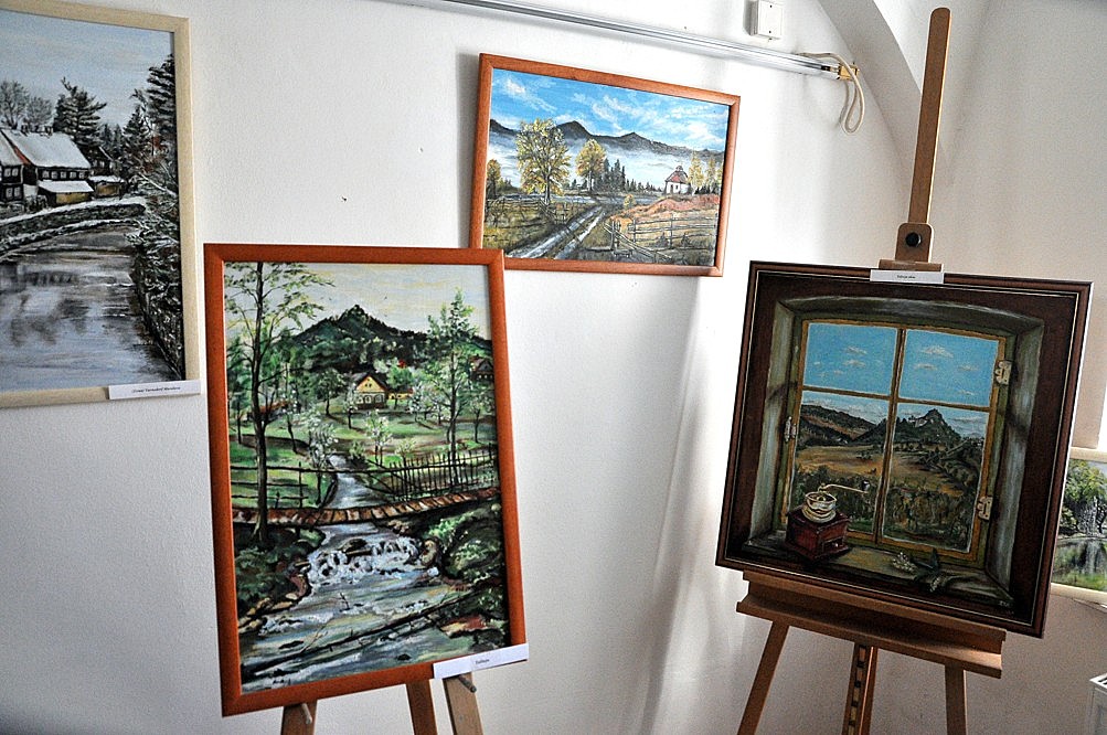 Nevím, kolik místních tuší, že i v naší ZUŠce se nachází výstavní prostor, kde je možno se setkávat s výtvarným uměním. Příležitost se s výstavní síní seznámit poskytla vernisáž výstavy místní amatérské malířky Jiřiny Novákové, na které se navíc netradičně setkalo i několik odlišných „světů“ – členové KPMV, turisté i tradiční návštěvníci kulturních akcí. Samozřejmě nechyběla hudební produkce v podání osvědčených žáků ZUŠ (housle – Tomáš Friese, saxofon – Barbora Ptáčková / klavírní doprovod – Tomáš Bubla).