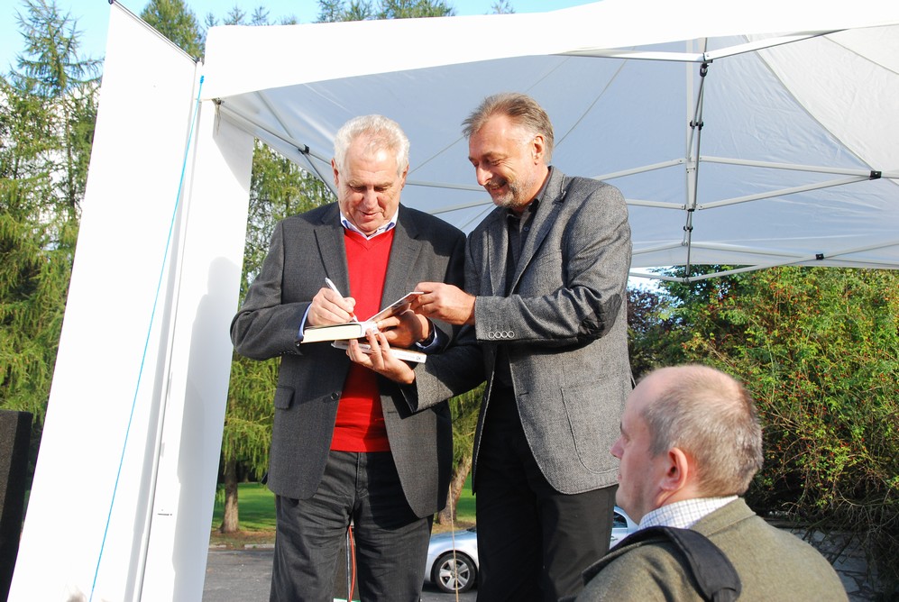 V první chvíli jsem měl pocit, že někdo musel úspěšně rozhlásit fámu, že tu budou klobásy zadarmo, jinak si složení publika nedokážu uspokojivě vysvětlit. Zpočátku to tak nevypadalo, na parkovišti postával sem tam někdo v dostatečné vzdálenosti od pódia, ale najednou frk hrk, delegace nastupuje a lidí se sbíhá kolem stovky. Ti, co se tvářili mediálně, jsou mi zcela neznámí, své zastoupení tu ale má Deník. Proslov čestného předsedy, představení krajských kandidátů, žádné velké slibování hor i s horákama, tahle část je hotová poměrně rychle. Následují dotazy, tazatelé jsou odměňování knihou „Jak jsem se mýlil v politice“, kterou na konci její autor ochotně podepisuje. Řeč je o zdravotnictví a rušení nemocnic, o přizpůsobivých a nepřizpůsobivých, o pracovních místech, o rozkrádání na nejvyšších místech a osobní odpovědnosti, o školství, maturitách a školném, o daňové progresi a přiznávání majetku, o alkoholu. Cirka hodina, poté jsou dotazy ukončeny a následuje autogramiáda. Když se koukám do davu, vidím tváře, které bych tu fakt, ale fakt nečekal (a to nemám vyfocené všechny).