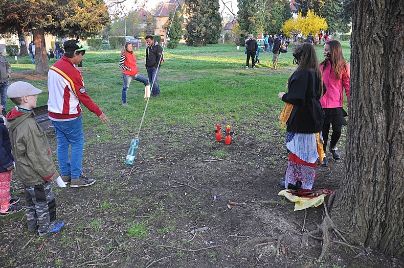 Tentokrát nikoli v parku před knihovnou, ale v parku před divadlem. Ale nikoli hned, nýbrž až po pohádce. O čarodějnici Chytrolíně – veselá pohádka plná písniček, kouzel, překvapení a komických situací. Jo, překvapený jsem byl hodně, hudba písniček řvala tak, že jsem hercům nerozuměl ani slovo, a jsem asi příliš, příliš stár, protože komickou jsem neshledal situaci ani jednu. Ale děti se smály, až se za břicho popadaly. A ačkoli v 18:00 byl před divadlem jen velitel městské policie a v divadle pár rodičů s dětmi, na konci pohádky bylo divadlo docela obsazené a po jejím skončení už v parku běhala první soutěžící děcka. Obešel jsem disciplíny dvakrát, a protože průvod byl plánován na 21:00, využil jsem výhody a šel domů. Většina ostatních tam zůstala jen tak čučet, protože brzy nebylo co dělat…