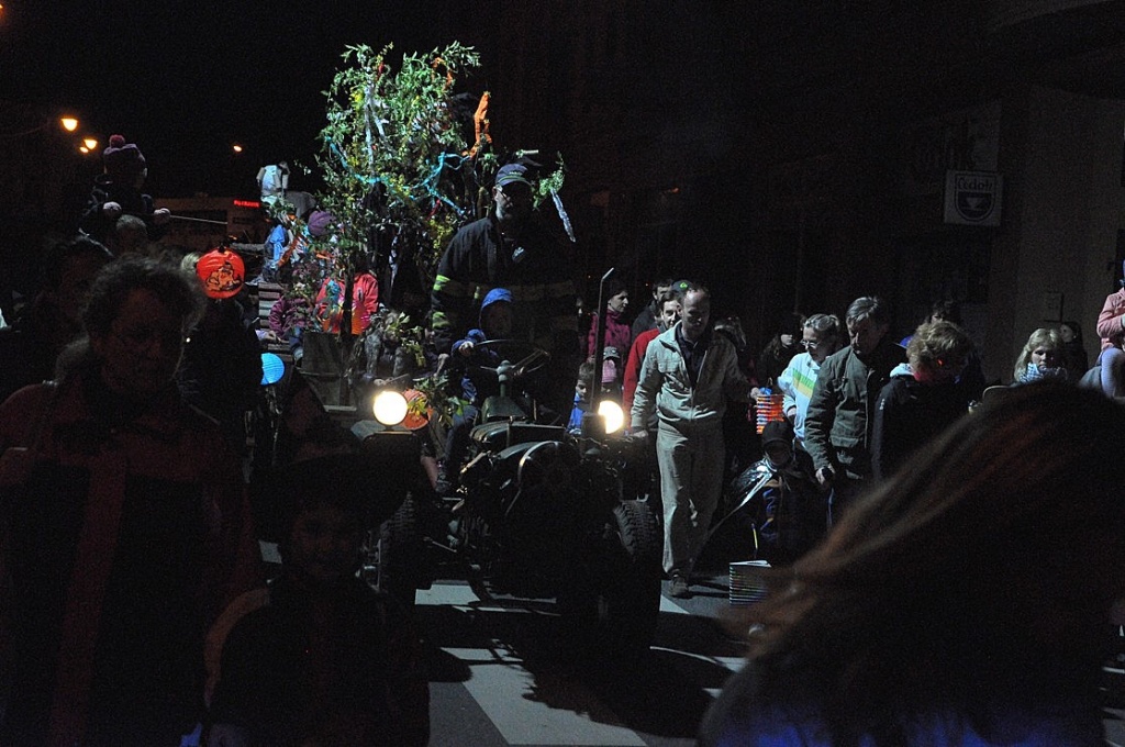 Vrátil jsem se na začátek průvodu, čarodějnice už trůnily skryty zrakům za nazdobenou břízou na traktůrku, který se brzy rozpufal a vyrazil na náměstí. Moderátor několikrát vzýval zakázané slůvko, než mu bylo řečeno, aby si dával na letošní změnu opravdu pozor. Z traktůrku na pódium a jako nejlepší byla vyhodnocena sice jen jedna, ale nakonec na vatře skončily všechny. Upáleny úspěšně, ohňostroj letos bez hudby, leč velkolepý. Pak zase začalo rámusit Semeno, já ještě obešel stánky a hajdy domů.