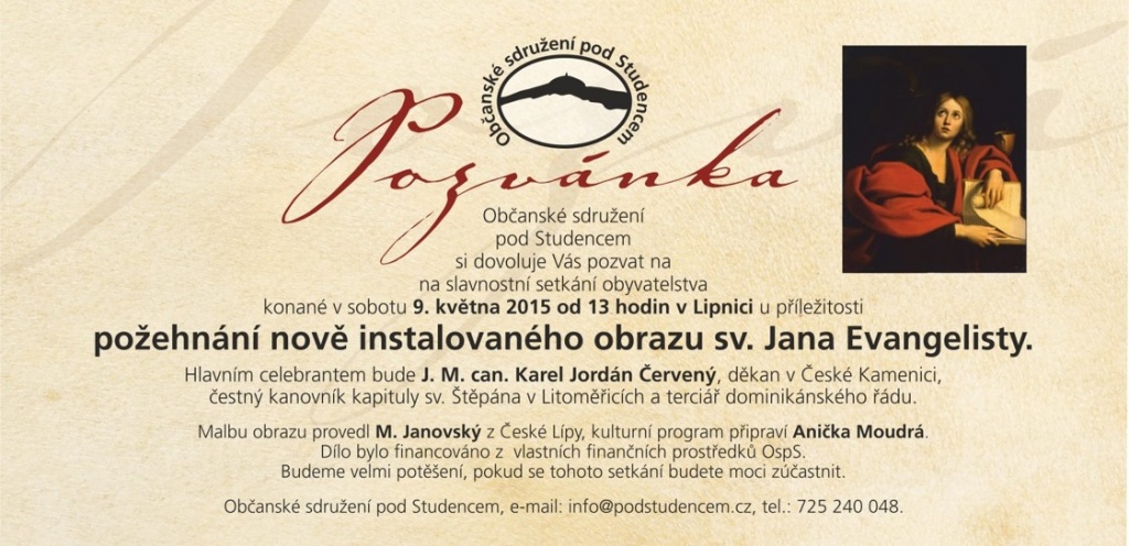 V pátek 8. května 2015 odjíždějí krásnolipští turisté na třídenní poznávání Českého ráje. Já, cčkoli si někteří myslí pravý opak, se bohužel naklonovat neumím, takže ke své lítosti s nimi nejedu. Zůstávám, abych mohl dokumentovat zdejší akce, jako třeba pochod na třípanský kámen (čistě zištně, v Lipové bude v prodeji další nová turistická známka právě s tímto motivem). Jestli se vrátíme tak, abychom stihli avizované vystoupení Big Bandu ZUŠ Rumburk na sportovním hřišti, to nemám ponětí.