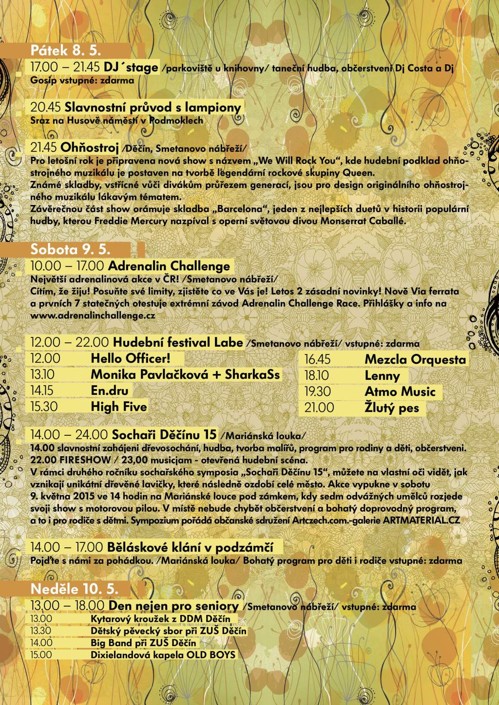 V neděli 10. května 2015 se XC závody přesunou do Rumburka na Dymník, méně nároční kolisté se mohou přidat k letošní Hvězdicové jízdě, jejímž cílem je tentokrát Dolní Poustevna. Včerejší závody na varnsdorfském Hrádku vystřídá Den matek a o něco později se v Městském divadle předvedou Varnsdorfu STARSky.