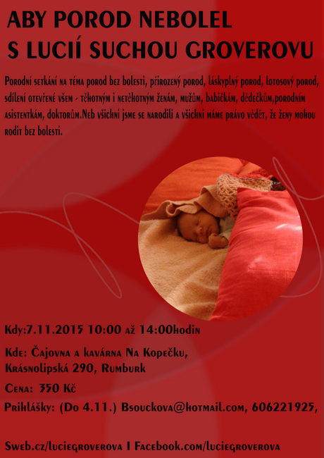 Třetí kurz s Lucií Suchou Groverovou na téma: Aby porod nebolel je určen nejen těhotným, ale i netěhotným ženám, mužům, babičkám, dědečkům, doktorům, porodním asistentkám…