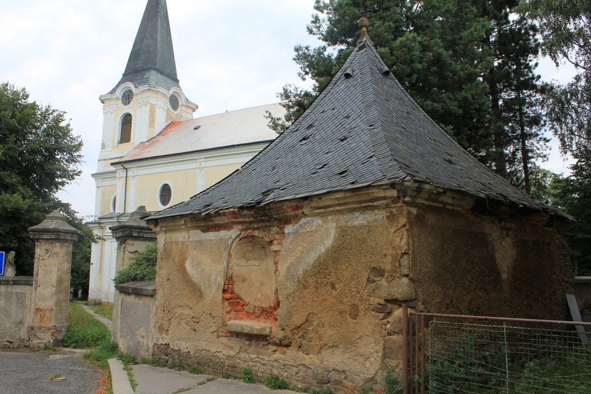 Obnovou fasády a vnějších vápenných omítek v letošním roce pokračuje záchrana bývalé márnice u kostela sv. Jiří v Jiříkově.