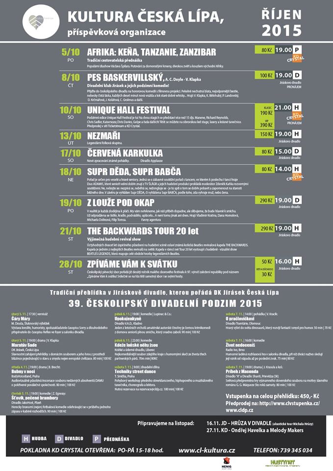 Další akce si můžete vybrat podle plakátků, něco najdete samozřejmě i v našem kalendáři.