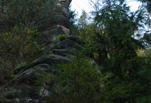 S velkou radostí jsem se ve středu 17. října 2012 opět zařadil mezi „pokusné králíky“, kteří pro Obecně prospěšnou společnost České Švýcarsko v oblasti, zmíněné v nadpisu, zkoušejí plánované nové turistické trasy. Již podruhé se pod vedením lektorů konala vycházka po okolí České Kamenice. Zájemci se mírně obměnili, tentokrát bylo dokonce i víc chlapů. Nejprve autobusem do Srbské Kamenice, kde vystupujeme skoro až na jejím konci, v místech, kde silnici kříží modrá turistická stezka. Na úvod jsme seznámeni s celou plánovanou trasou, jejíž část nás dnes čeká, poté se vydáváme směrem k Ferdinandově soutěsce. V ní jako v první ze soutěsek byla zahájena plavba už roku 1881. Ale to je dávná minulost a dnes je neprůchodná, modrá značka vede terénem nad levým břehem.