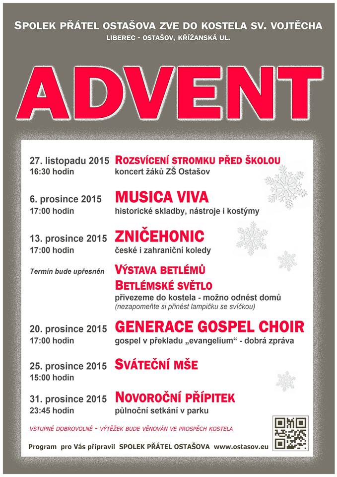 V pátek 27. listopadu 2015 se to rozjíždí. My máme v kalendáři evidovovánu šestici rozsvěcení v blízkém okolí, nejspíš jich ale bude víc. K tomu koncert v Krásné Lípě v kulturáku a jedna světová premiéra ve Varnsdorfu. Jen mám takové obavy, že pokud si účinkující neseženou své vlastní diváky, obdivovatele a příznivce a nesvezou je z Evropy autobusy k divadlu, varndorfským to bude úplně u pr… jedno. A ještě mě známá (díky, ZZ) upozornila na otevřený turnaj v badmintonu, který se uskuteční v tělocvičně ZŠ Edisonova Varnsdorf.