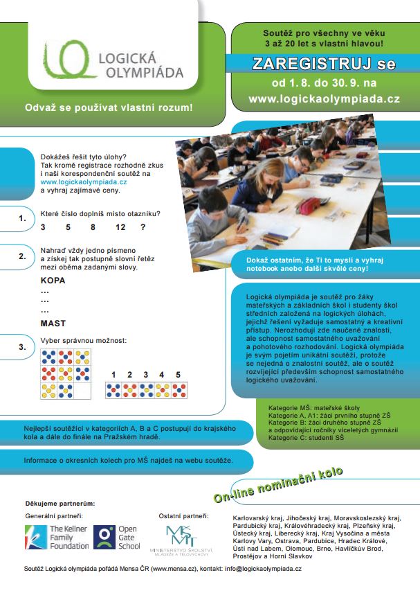V tom má Anička pravdu. Všichni jsme na ni pyšní. Do republikového kola Logické olympiády postoupila po vítězství v krajském kole a ani v Praze se „neztratila“. V konkurenci 65 dětí se umístila na vynikajícím čtrnáctém místě.