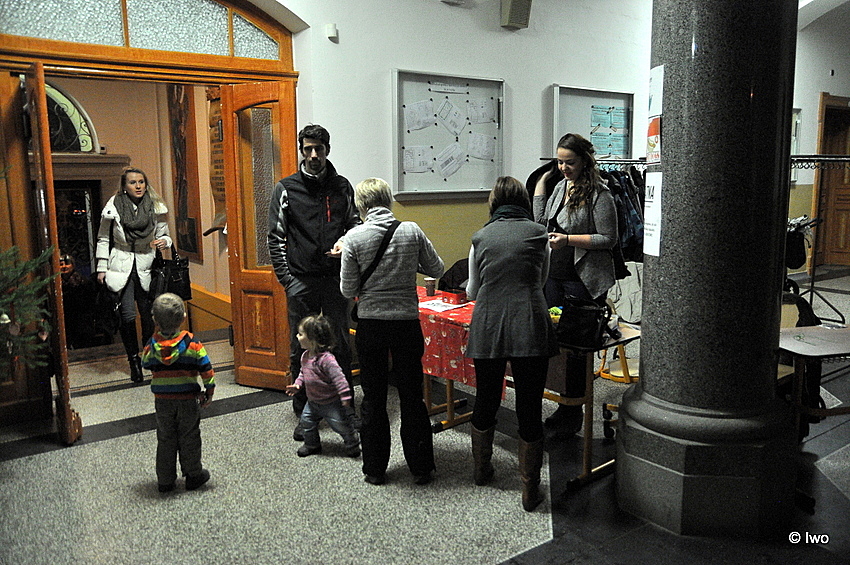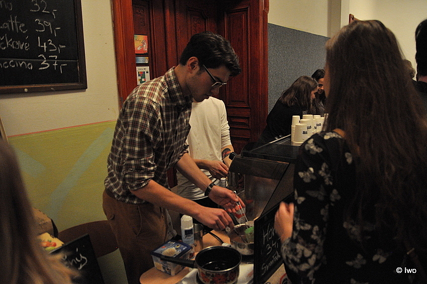 Letos jsem ani nestačil nakouknout do Ježíškovské poštovny, ani před vchod na kapry, a tradičně opět ani do auly. Někteří marně hledali Vohnoutovský krámek, ale většina stánků byla tradičních a tradičně na svých místech. Já jako člověk, který dorazil na místo bez oběda, byl ale velmi potěšen, že se mi zazdálo, že došlo k posunu od cetek a tretek, jak o nich psal kolega bezvěrec Pavel ve svém zamyšlení. Narazil jsem totiž na chlebíčky, na wafle, na bramborový salát, na kuřecí řízky! No a samozřejmě na spousty a spousty známých, na obou stranách barikády…