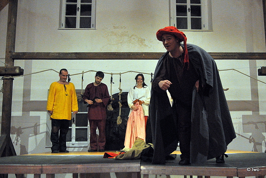 Na základě předchozího provedení hry v regionu (na kterém se Výběžek tak trochu zasloužil) slovo dalo slovo a českolipáci dorazili ještě více na sever. Půda plná, bránice příjemně namasírovány, obecenstvo spokojené. A i když ta féérie chvílemi vskutku vypadá, jako kdyby to byla koláž, výcuc a moderní kus, základem je opravdu a vskutku klasik divadla, William Shakespeare. Vždyť „celý svět je jeviště a všichni lidé na něm jenom herci“, i když někteří mají i oněch sedm rolí v sedmi aktech. Jen to občas není tolik k smíchu, jako v tomto porvedení…