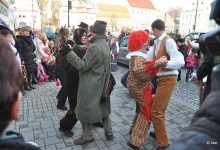 I když obsazení takřka totéž, probíhá to tu trochu jinak – nejdříve vyžádané povolení k obchůzce od zástupce města, pak tanečně hudební chvilka a teprve po ní na obchůzku. Nejprve ke kostelu a po ní k Domovu pro seniory. A na víc jsem už neměl čas.