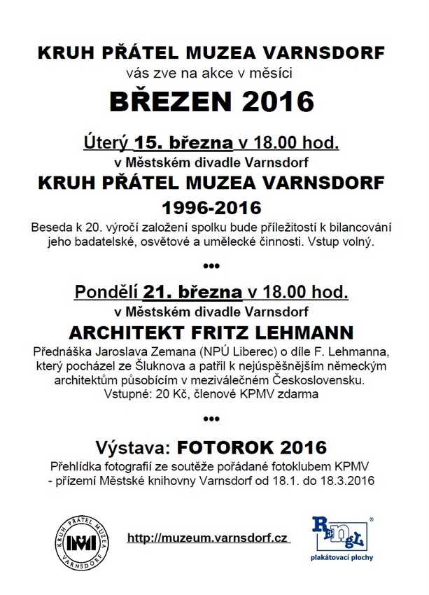 V úterý 15. března 2016 se v Městském divadle ve Varnsdorfu bude dopoledne hrát pro děti a odpoledne vzpomínat na 20 let existence Kruhu přátel muzea Varnsdorf.