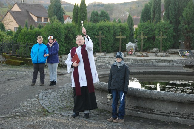 Jsem tu pořád na severu náplava, což kromě jiného znamená, že na hřbitov příliš často nechodím. Ovšem to, co tu davy zažívaly v pátek, to asi příliš normální není. Zaparkovat nebylo kde, po hlavních cestách se valily zástupy tam a zase zpátky. Přesto se uprostřed toho hemžení našel ostrůvek klidu – na křižovatce u kašny se uskutečnila Dušičková vzpomínka – starokatolická církev ve Varnsdorfu pozvala zájemce na společnou modlitbu a vzpomínku na všechny zesnulé.