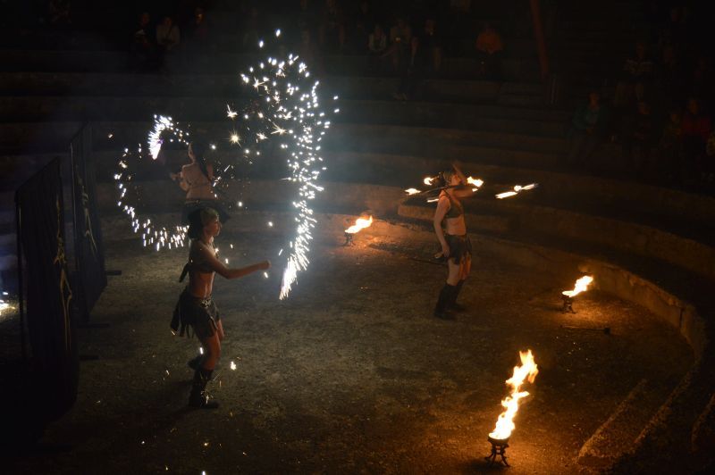 Celý večer mohli také nejmenší návštěvníci sbírat u jednotlivých tvořivých zastavení razítka a po splnění některých úkolů na ně čekala na závěr odměna z královské pokladnice, ukryté v loretě. Byla plná dobrot, penízků a dokonce i drahých kamenů:-) Ve všech klášterních prostorách Vás provázely libé tóny v podání žáků a učitelů ZUŠ Česká Lípa a koncertem jejich Jazzové farmy jsme již tradičně letošní noc zakončili. Ještě před tím ale večerní potemnělou klášterní zahradu rozzářila velkolepá ohňová show tří ohnivých amazonských žen v amfiteátru muzea.