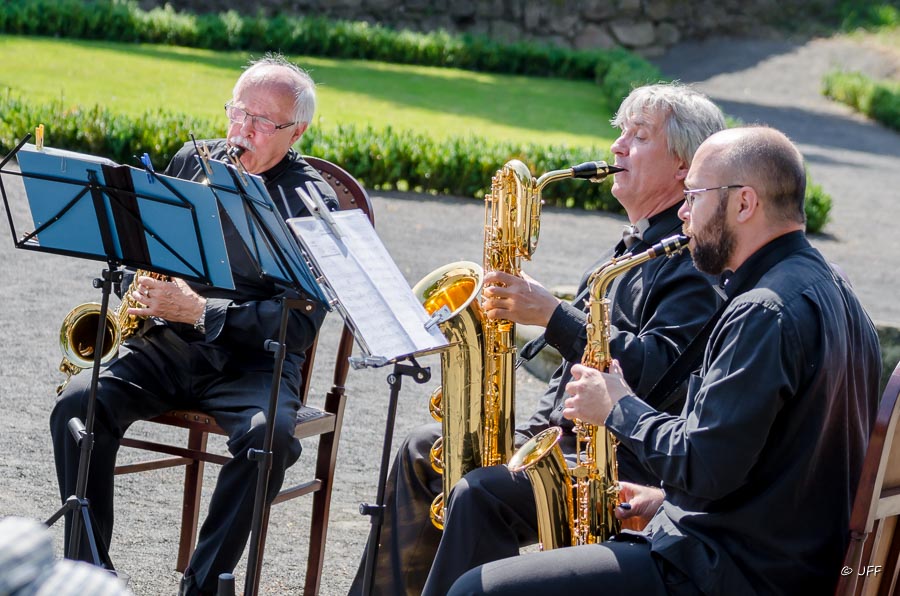 Okolí zámku v Lipové doznalo za poslední rok řady zásadních změn k lepšímu. Nově vysazený zámecký park láká v tomto parném létě na odpolední procházky. Tuto sobotu 23.7.2016 však přilákal i na již tradiční Lipovské hudební slavnosti. V zámeckém parku v Lipové vystoupilo Zámecké saxofonové kvarteto pod vedením Josefa Žemličky. Jak je vidět z fotek, návštěvníci byli oproti hudebníkům ve velké výhodě, protože se většina z nich schovala před pražícím sluncem do stínu zámeckých alejí.