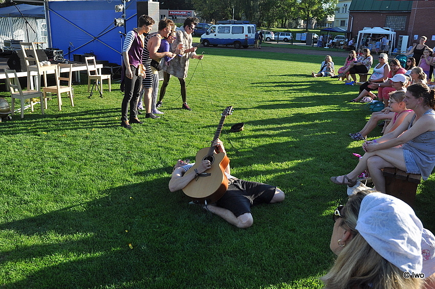 Od Chytej ušima se děti přesunuly k divadelnímu šapitó na představení Hanky Strejčkové Vyprávění starého piráta. Loutka, živá hudba, pohyb a vtahování dětí do napínavého příběhu vyvrcholilo postavením papírových loděk a ryb a společné plavbě po širém moři (jak krásně vyšlo počasí a jak užitečný byl zavlažovač trávníku). Následující vystoupení skupiny Cink Cink Cirk bylo jedním slovem cirkusová, zábavná a vtipná show. Artisté rozdávali energii, radost a diváci nešetřili ovacemi. Děti si hned nato mohly v Dílně smíchu a o smíchu s červeným nosem i bez něj (Hana Strejčková, Vendula Burger) nejen smát, ale i cvičit, zkusit si akrobacii, legraci, pantomimu. A že se děti i dospělí opravdu hodně nasmáli. Večerní program se pak postupně přehoupl k folk-rockové lince se skupinou Byl pes. S příchodem tmy rozzářila hřiště ohňová show skupiny Mistral. Zážitek z festivalu pak umocnila západočeská kapela Booger, kterou publikum za žádnou cenu nechtělo pustit. Mnoho návštěvníků si navíc z tomboly odneslo hodnotné dárky od Městského divadla Varnsdorf.