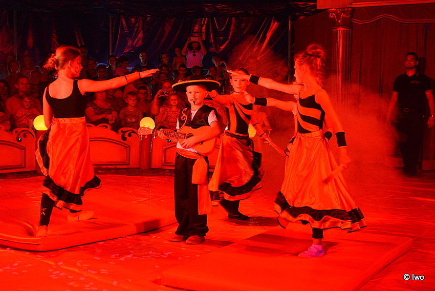 Ano, v podstatě stejný princip jako v již zmíněném roce 2013 (zapojen byl tehdy i Rumburk). Jen pokrok na postupu – zmizela živá zvířata. Něco velejednoduché, něco k neuvěření, ale pro každého něco. Přes dvě hodiny s pauzou na prodej občerstvení a nejrůznějších blbinek, a také s možností objednat DVD se záznamem vystoupení. Letem světem s průvodci v podobě malé holčičky a moudrého medvěda. Jsem přesvědčený, že mnohý rodič jen zíral, co v jeho dítěti vlastně vězí… Tak jsem si to dal dvakrát, skupinu B od 10, A pak ve 14 hodin. A s tím přišlo další překvapení – totéž zdaleka nebylo totéž. Porovnáním člověk pochopil, jak citlivě lektoři k dětem přistupují, jak jsou schopni čísla přizpůsobit aktérům, buď využít jejich nadání, nebo je do něčeho nenutit za každou cenu. Jen za fotografy musím říct, že toho kouře chvílemi bylo až moc.