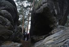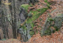 Posilněni se rozhodujeme ještě pro závěrečnou krátkou odbočku a auty se vydáváme ke Skále smrti. Šeří se a začíná mírně mžít, já ale vyzužívám příležitosti, že tentorkát nejsem sám, a troufnu si vstoupit do místních sklepení – rozhodně překvapí svou rozsáhlostí, nezapomeňte si baterku, pokud budete plánovat cestu. A poslední zastávka dneška tvoří krásnou tečku, zbývá už jen návrat do domovů.