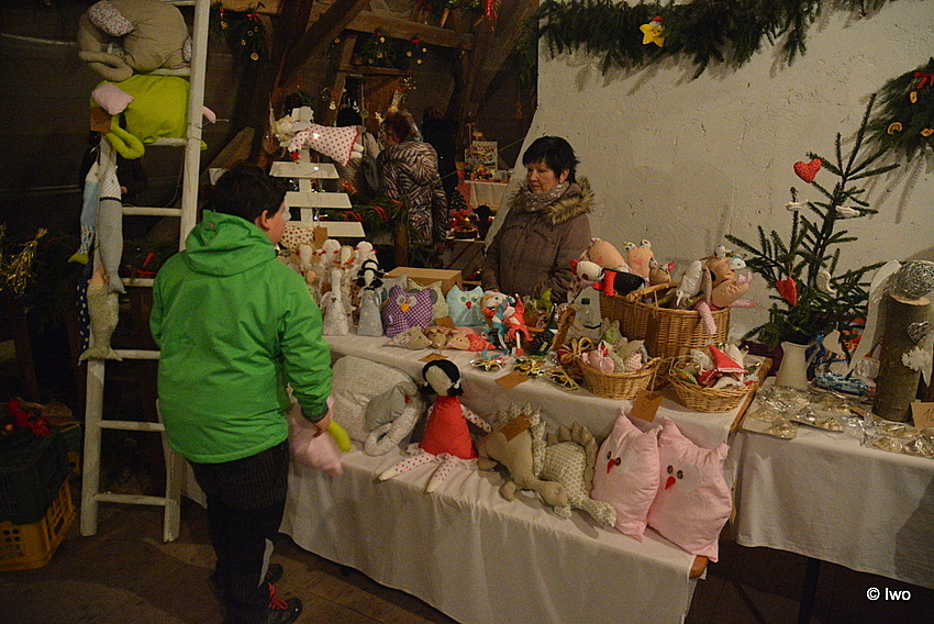 Letos jsem dorazil relativně pozdě, protože jsem přejížděl z Jiříkova, lidí ale ještě všude plno – i před farou, i uvnitř. Na první pokus jsem se do některých zákoutí ani nedostal. Základ lze převzít z textu minulých let – Mikuláš s čertem a andělem, stánky všude, mnohé jsem viděl dopoledne v KL. Bramboráky a párek v rohlíku, trdelníky, kapři na chodbě, program na půdě. Z něj jsem stihl kousek zpívání gympláckého sboru z VDF a varnsdorfské Náhodou. Na závěr pak starosta Jiřetína provedl losování tomboly a komu to bylo málo, mohl z fary přejít do dřevěnky.