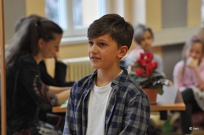 Tady u nás už roky „jen“ ta recitace. 4 kategorie, tříčlenná porota, mladší 2 kategorie jeden text, starší připraveny dva texty pro případný rozstřel. Prostě jako vždy. I letos se některé texty opakovaly, asi jdou leckteří na osvědčenou jistotu. Nicméně na druhém pólu slyšet Kainara je balzám pro uši i duši, obzvláště v takovém podání. U starších se mi zdá, že už to není tolik o recitaci a citu, jako spíš o paměti. Navíc když si člověk přečetl „startovní“ listinu, bylo v podstatě dopředu jasno. Jen pro upřesnění, pokud byste kontrolovali jména a fotky – na úvod vystoupil nesoutěžní předskokan a III. a IV. kategorie byly prohozeny, protože část soutěžících z té třetí byla někde jinde na jiné soutěži a přemisťovala se na poslední chvíli… No prostě nejsou lidi.