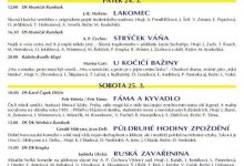 Vy si zkuste něco vybrat v připojených plakátcích nebo v našem kalendáři. Samozřejmě nemáme přes veškerou snahu v evidenci všechno, co se kde šustne, o spoustě toho (jako vždy) nevíme…