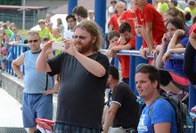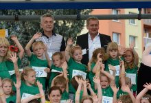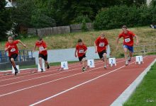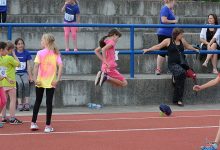 Odpolední program zahájily soutěže místních škol (základních a středních). Běhy, skoky do výšky a do dálky, a pro mne překvapivě i oštěp (mimo hlavní ovál v samostatném prostoru). Jen jsem byl trochu zmaten, protože kluci a holky dohromady, občas podivný mix věkových kategorií, torchu skřípající organizace rozběhů – no, já vím, byla to spíš exhibice a příležitost, než soutěž, ale v porovnání s tím, co mám možnost už roky vidět ve VDF nebe a dudy. Dorazila média z okresu -> i studio Vandej ->, bubeníky vystřídali THE PIX a hlavně se nakonec objevili hosté. K Anežce se přidal hejtman Ústeckého kraje Oldřich Bubeníček a také Helena Fibingerová. Tím pádem mohlo dojít na slavnostní přestřižení pásky, další pózování a projevy. Na další program jsem nečekal a vzal to domů přes raut pro hosty…