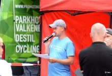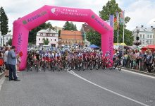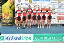 Vlastně ještě pár minut před startem to na náměstí vypadalo, jako že nic. Pusto, prázdno, holé pódium, ani lidi, ani auta, ani kola… Najednou jak mávnutím kouzelného proutku všechno jinak. Představování závodnic, s některými vybranými pár slov, všude horečnaté přípravy, mezi auty a stany se proplétají zvědavci, shromažďující se na start. Kamery, foťáky, mobily. Závodnice se staví pod bránu, vyčkávají, vyčkávají, každý se snaží zaujmout co nejlepší stanoviště, aby něco viděl. A najednou píšťalka, starosta Krásné Lípy Jan Kolář mávne praporkem tak rychle, že nemám na fotce ani šmouhu a frnk frnk, pestrobarevný peleton je za zatáčkou. A je to jak v životě – po velkých přípravách a chvilkové slávě za pár minut už ani pes neštěkne, že tu něco bylo. Náměstí je zase prázdné, lidé se vypařili a náhodní příchozí netuší, že se tu ještě před chvílí ani nedalo projít…