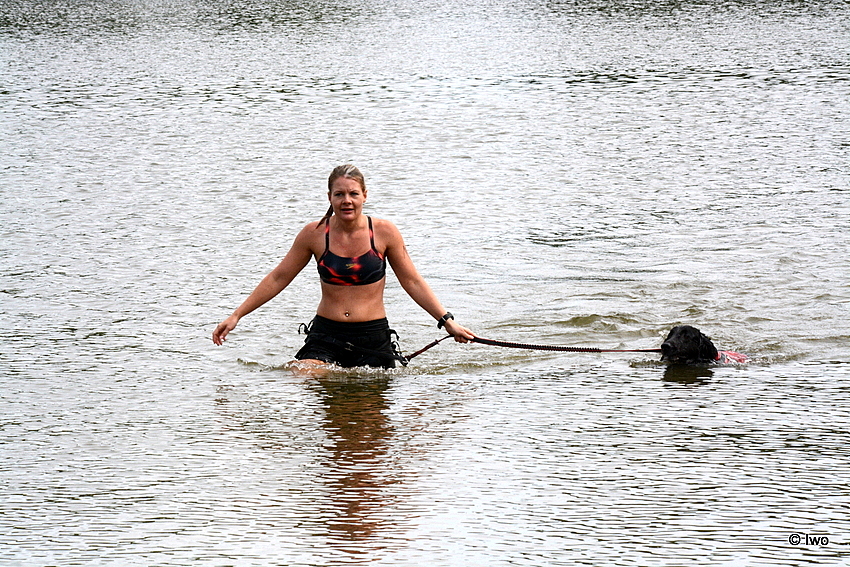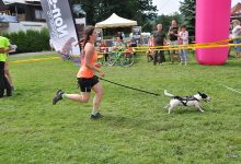 Že vám ten název nic neříká? No, lidi mají všelijaké nápady – představte si triatlon, jenže s tím, že závodník je celou dobu pevně spojený – se svým psím partnerem. A pak jste doma. Samozřejmě odlišnosti tu jsou – jednotlivé tratě jsou podstatně kratší a nestartuje se najednou, ale v minutových rozestupech. Psů všeho druhu a výkonostních tříd, takže se pole míchalo už při při první disciplině. Celá řada včerejších účastníků se tu pohybovala i dnes – někteří si dokonce vypůjčili psa, aby si mohli stoupnout na start, jiní se přišli jen dívat.