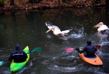 Faktem je, že zoologové z Liberce mají celou operaci dostatečně propracovanou a odchyt šel jako na drátkách. Dva kajaky (jeden obsazený samotným ředitelem!) a jedna pramička zahnala ptáky (podle wiki nejtěžší létající, dosahují váhy až 15 kilogramů) k místu odchytu, několik jedinců se však přeci jen nechtělo se svobodu rozloučit. Bylo jim dovoleno ještě několik přeletů jezírka, ale za hodinku byli už všichni v dodávkách na cestě do tepla.