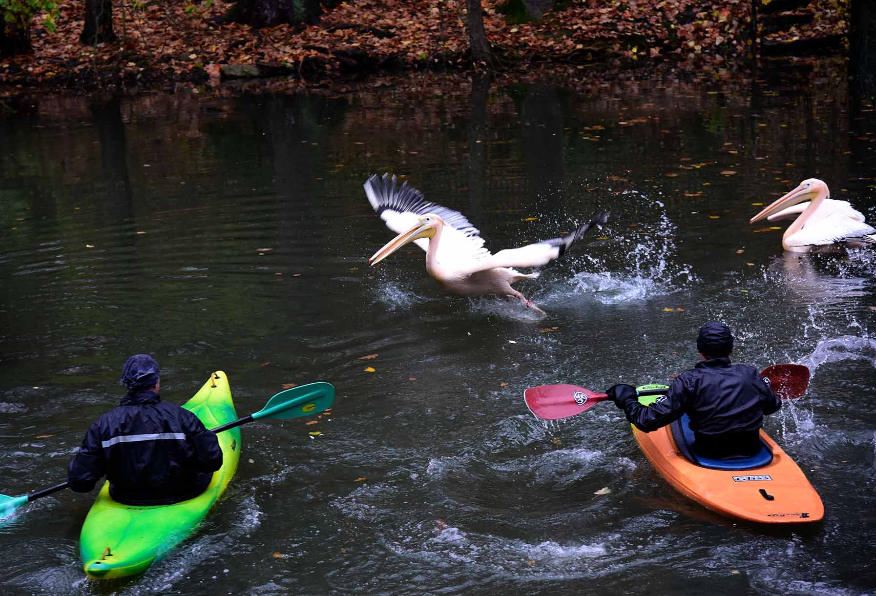 Dvacítka pelikánů bílých a skvrnozubých z liberecké zoologické zahrady byla dnes přemístěna do tepla. Odchytu se kromě ptáků samotných účastnila skupina pracovníků ZOO a velká skupina novinářů. Pelikánům se v dnešním zpravodajství nedá pravděpodobně uniknout.