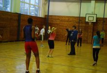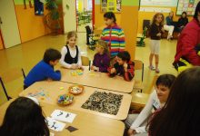 Dorazil jsem krátce po otevření, abych si před plánovaným programem stačil projít samotnou školu. Do budovy se vstupovalo bočním vchodem a hned za dveřmi hejno připravených deváťáků – průvodců, kteří se ujímali každého příchozího. Dva kluci, kteří se přidali ke mně, máchali rukama tu k vystaveným diplomům a pohárům, tu k výtvarným dílům žáků na schodištích, upřesňovali, co je kde na kterém patře kterého pavilonu, upozornili, že na střechách obou budov jsou solární panely, že na „náměstíčkách“ mezi třídami jsou k dispozici pnig-pongové stoly. Ukázali mi běžné třídy, školní družinu, specializované učebny, tělocvičny, jídelnu, šatny… Rodičů potenciálních prvňáčků jsme cestou zrovna moc nepotkávali – to se ovšem změnilo v okamžiku, kdy jsme se vrátili do výchozího bodu, kde se už chystalo pásmo, představující zájmové kroužky školy. Tady bylo hlediště více než nabito.