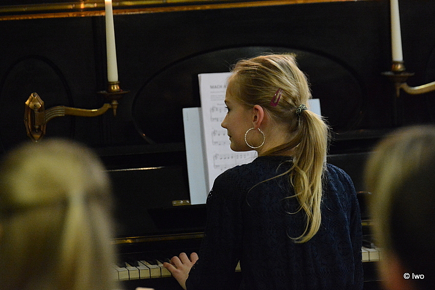 V kavárně hlava na hlavě, klavír čelem ke stěně, já se zpožděním – no co se tady asi tak dá smysluplně vyfotit? No, skoro nic. Musíte tedy vzít zavděk zády, obecenstvem a několika fotkami z mobilu samotné pořádající paní učitelky.